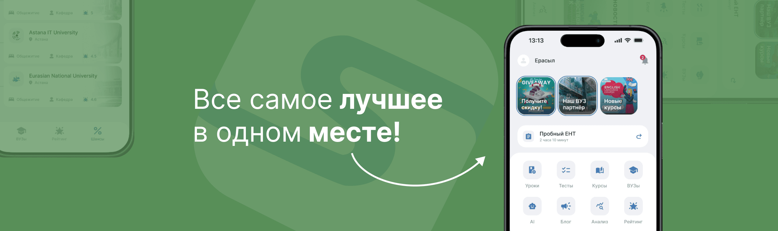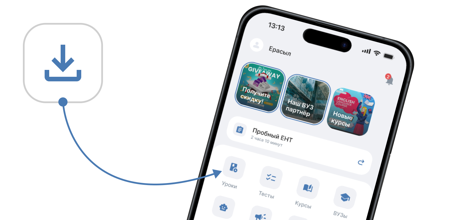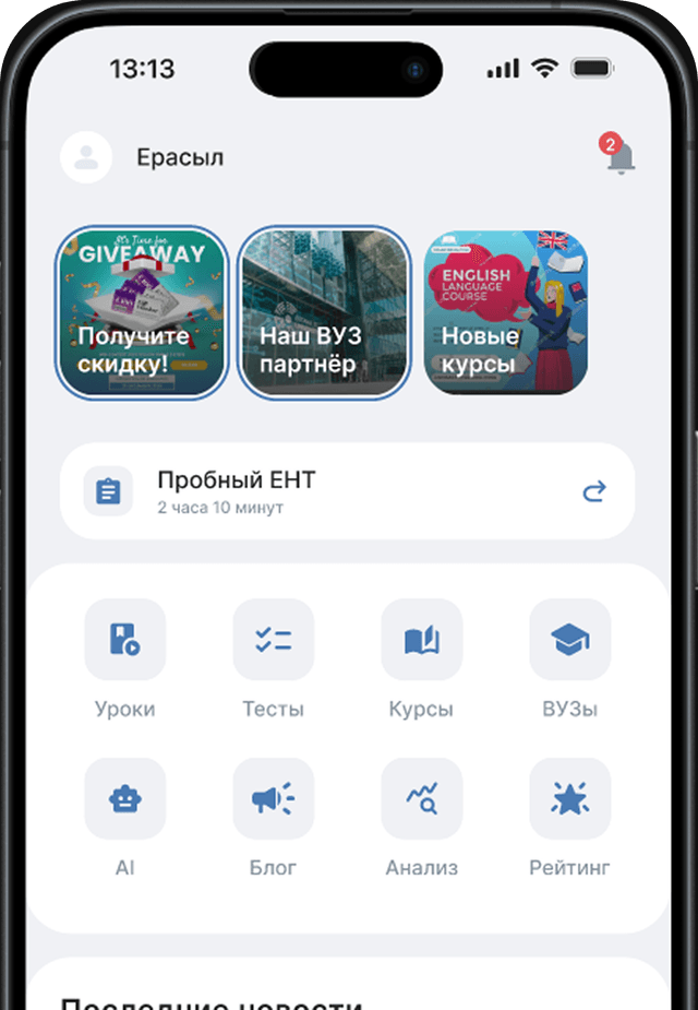 Сервис для проверки и закрепления знаний по различным предметам. Пользователи могут проходить разные виды тестов, включая тренировочные и экзаменационные форматы, такие как ЕНТ.