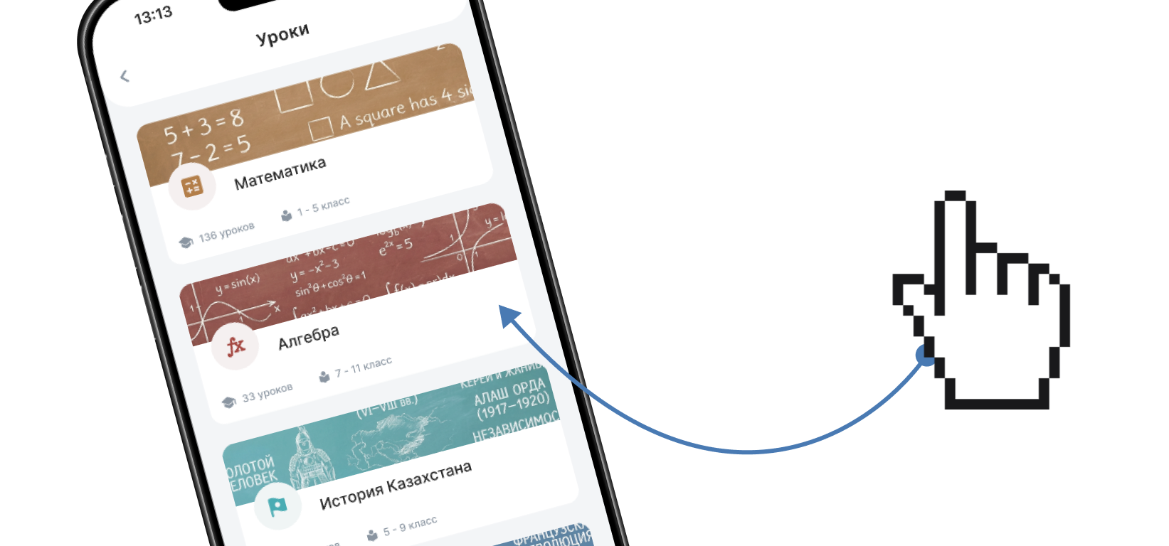 Онлайн-сервис для удобного и системного обучения. Пользователь выбирает нужный предмет и получает доступ ко всем его темам в одном месте: видеоматериалы, текстовые объяснения и наглядные примеры.